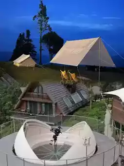 The hotel has 16 independent wooden villas, 27 independent tent villas, 14 fixed RVs, and 8 stargazing camping spots. The villas are staggered on the tea mountain, and the view of each one is not blocked at all. This time I stayed in a wooden house, 54 square meters, with a wide view from the balcony, where you can drink tea and watch the clouds roll by, a poetic scene!