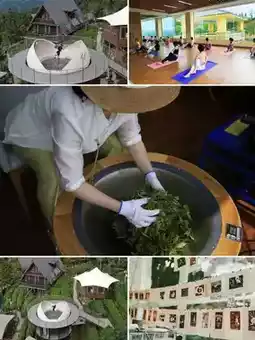 One of the most attractive features of this hotel is its clever integration into nature. Whether you choose to stay in a romantic cabin or try a unique tent experience, you can enjoy the fun of being surrounded by green mountains and rivers. At night, you can lie on the starry camping spot and count the stars, or follow a guide to learn about tea picking and making during the day, both of which are unique lifestyles.