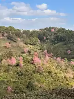 The Tea Mountain plank road is one of the earliest cherry blossom viewing spots in Pu'er, the first choice for most people. The cherry blossoms on Tea Mountain bloom early and it’s also a great place for portrait photography.