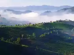 With the morning glow reflecting on the horizon and the sea of clouds rolling beneath your feet, the ancient tea forest appears faintly. The sea of clouds at Jingmai Mountain is majestic and powerful, with ancient trees draped in veils of green mist. This is the hometown of tea and also the hometown of clouds.