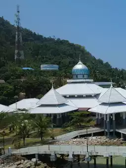 The mosque’s deck can be slippery when wet, so wear sturdy footwear. Be respectfully quiet inside, especially during prayers. The tropical sun is strong—bring sun protection even for short walks.