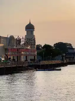 Sat by the riverside, watching silhouettes of the mosque and mini monuments glowing in the last light of the day…