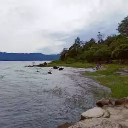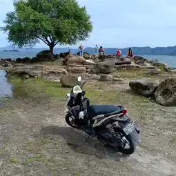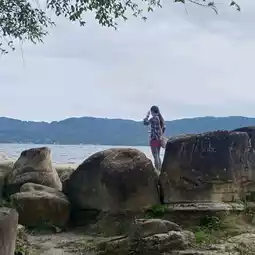 There is an iconic tree that grows very near to the water surrounded by big rocks. The rocks in this place make it one of the exotic places in Samosir Regency.