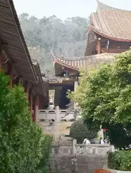 As you approach the temple, the first thing that catches your eye is a tall archway with the words "Nanshan Guanghua Temple" engraved in large, vigorous characters. The pillars of the archway are carved with exquisite patterns, including auspicious creatures such as dragons, phoenixes, and unicorns, which are lifelike, making people marvel at the superb skills of ancient craftsmen. Passing through the archway, a wide stone road appears before your eyes, with lush trees on both sides of the road. The breeze blows, and the leaves rustle, as if telling the story of the temple.