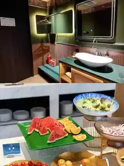 Putian Shangri-La is a hot spring hotel that was completed in the past two years. The decoration style is very luxurious and modern. It was designed at the same time as Shanghai Bund and is almost the same. The luxury pavilion is currently on the ground floor. It uses a menu ordering method. The opening hours are 5:30-8:30. We ordered "Putian white-cut lamb, Putian braised noodles, special dumpling soup, Putian oyster omelette, special five-spice roll, sweet and sour lychee meat, fish soup rice, garden salad, fruit platter, every dish is super delicious, especially love lamb is particularly delicious, oyster omelette is super oyster, Putian braised noodles are filled with various seafood, fish and shrimp fairy shell, peanuts and vegetables, the soup is thick, it is the most delicious braised noodles I have ever eaten, Fujian is really a treasure of food! The waiter here is also enthusiastic and simple, and the cocktails are very good. The room currently only has two types of rooms, small and exquisite, with strong functionality, and the smart home used is the same as Shanghai Bund.