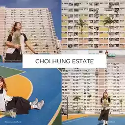 A rainbow basketball court where everyone has to come to take pictures. Oh, I have to say that it is quite far. It is far from Tsim Sha Tsui. Get off at Choi Hung Station Exit C3, then walk for about 15 minutes. When I arrived at the building, I still couldn't find the basketball court. LOL What the heck? I recommend asking for directions from people around there. When I arrived, there were a lot of people. I had to wait in line to take pictures. I went in the afternoon, so there weren't many people. But the sun was really strong.