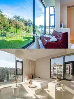 It is in the most prosperous area of Meizhou Island, which is the town center. It is very convenient to go to various attractions. There is a farmer's market next to it. There are Luckin Coffee, Heytea, Mixue, and Internet celebrity check-in restaurants downstairs. Foodies must come. You can see the sea and half of Meizhou Island from the window, and there is also a huge terrace.