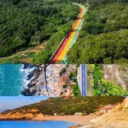 - Rainbow Highway: The colorful coastal highway connects the mountain and sea scenery, just like an anime scene.