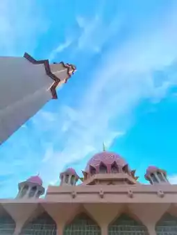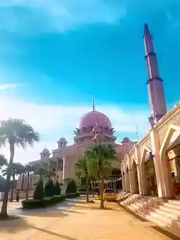 When you have entered the Putrajaya area, you will see the soft pink dome of the mosque. Then when you get closer, you will see the mosque building which has the same color as the dome, which is a mix of pink and brown or nude. Even more so when combined with the blue sky and Putrajaya Lake around it.
