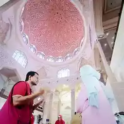The Putra Mosque, located on the shores of Lake Putrajaya, is an Islamic place of worship also known as the "Pink Mosque" 🕌✨