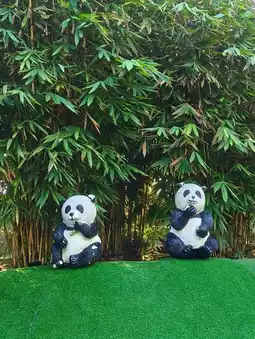 The attention to detail in this garden is incredible—from the beautiful lattice designs on the walls to the red lanterns hanging above the pathways. I also loved the adorable panda sculptures, which added a playful and welcoming touch to the surroundings.