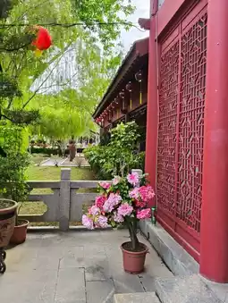 - A stunning red pavilion stands as the centerpiece, offering shade and a perfect spot for photos.