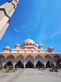 Putra Mosque is located in the administrative city of Putrajaya, about 30 minutes from Kuala Lumpur. The easiest way to reach it is by car or Grab. Alternatively, take the KLIA Transit train to Putrajaya Sentral, then use a taxi or local shuttle.