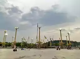 At Putra Square, families gather to hang out, with kids laughing and chasing bubbles or flying kites in the gentle breeze. Tourists mill around, snapping photos of the breathtaking scene, while some locals enjoy leisurely bicycle rides along the waterfront paths.