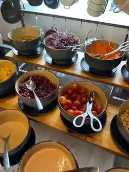 The seafood section was also excellent. Fresh shrimp, clams, and squid were prepared on the spot, and paired with a spicy sauce, they were as tempting as a drink. The dessert corner offered a wide selection, from traditional Malay kuih to tropical fruits and cakes, ensuring a satisfying end to the meal. 🍮🍍