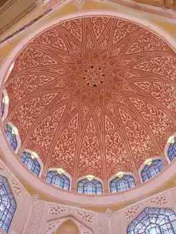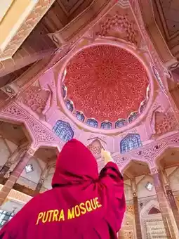 Step into serenity at the Putra Mosque, the iconic pink-domed gem of Putrajaya! 🌷 Overlooking the calm Putrajaya Lake, this architectural masterpiece blends modern Islamic design with traditional elements inspired by Persian, Moroccan, and Malay styles. The mosque’s rose-tinted granite façade and grand prayer hall create a peaceful atmosphere perfect for reflection and photography 📸.