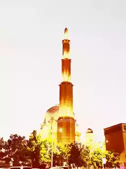 → The full moon rising behind the illuminated mosque