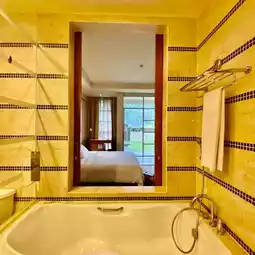 But for the best highlight is the luxurious room and bathroom. The bathub has the window directly to the room.