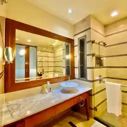 The salt water pool located up in the hill gives the view of Putrajaya Lake & City view. Or get a heat in the sauna room beside the pool.