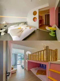 The room is super clean, and the decoration is really beautiful. From the Dyson hair dryer to the whole house intelligent voice control, it is super high-tech! There is also an outdoor swimming pool, and the children are very happy to swim here. The blue bathtub is also my favorite. It is really cool to watch the big screen projection together at night.