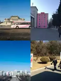 As you step into Pyongyang, you'll be impressed by the city's cleanliness and orderliness. The streets are spotless, and vehicles and pedestrians move in an orderly manner. The buildings along the roads are distinctive, creating a unique urban landscape.