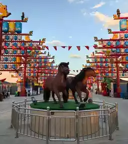 Didn't expect to see such a bustling and characteristic food and amusement street on the grassland. It's hard to see such a bustling night market in Tianjin. I came out for a walk and felt it on the grassland. There are Inner Mongolia specialty snacks, roast lamb head, pot tea, yogurt fried rice, Fengzhen moon cakes, as well as various innovative barbecues, fruit teas, fried mushrooms, all very clean. There are several performances inside, Dunhuang drum dance, Tang Dynasty night banquet, and the dance drama Golden Eagle on the Grassland, which are very worth watching. The night market is very attentive, and I feel that it is seriously building this scenic spot.