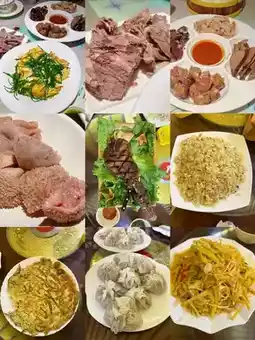 Lunch was in the city, with hand-grabbed meat, oat noodles, yogurt, and various dishes. On the grasslands, the first choice is authentic beef and lamb. Dinner was at the accommodation, with roasted lamb ribs, fried eggs, and daylily. After dinner, there was a bonfire in the yard, with a camping table set up for drinking, snacks, and watching fireworks. The next day's breakfast was steamed buns and rice porridge at the accommodation, and lunch was ice-boiled lamb hotpot in the city.
