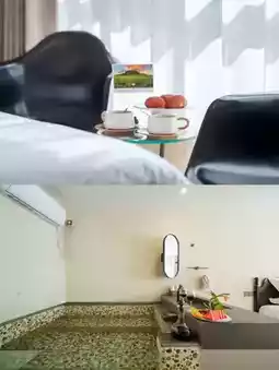 The suite in Courtyard 2 where we stayed has two rooms, one of which has a dining table❤️🔥.