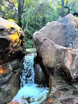 The scenery here is very beautiful, including Mandarin Duck Lake, Jianhu Pavilion, Colorful Valley, Shangxi Pavilion, Sanyou Pavilion, Sleeping Dragon Pine, Dice Stone, Knife Testing Stone, Guanpu Pavilion, and Six-branch God Pine. There is also a performance in the morning and afternoon.