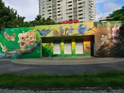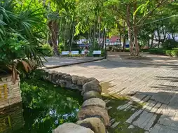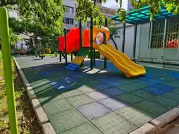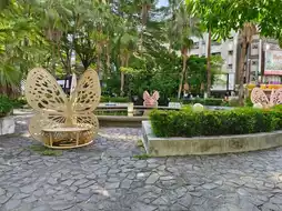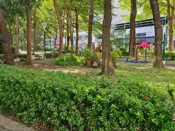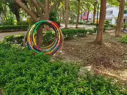 There is a large green area with many flower plants and wall art. There are complete facilities for the elderly to stretch their muscles, as well as play facilities for children. There is also a hula hoop on the side, which is completely free to use.