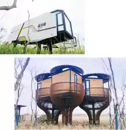 ➡️ For those who love starry sky houses🌃: There are starry sky house RVs of different shapes, honeycomb-shaped, bird's nest-shaped, treehouse-shaped, etc.; one side faces the windmills, and the other side overlooks the wetland lake view; connected to the farm, just a short walk away;