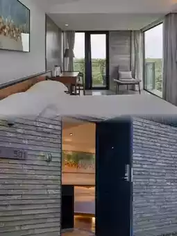 This hotel is located here, about a 40-minute drive from Qidong Station. Nearby attractions include Longwan Hot Springs Resort, Longwan Island Paradise, and Qitang City, making it convenient for shopping, eating, or sightseeing. By the tranquil seaside, there is an endless blue bay, scenes of birds circling and sand crabs foraging, swathes of reeds swaying in the wind, and even cartoon-like treehouses where you can leisurely sip coffee.
