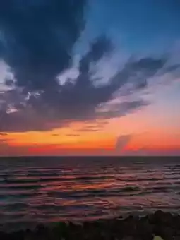 As the first ray of sunlight pierced through the clouds and illuminated the sea,