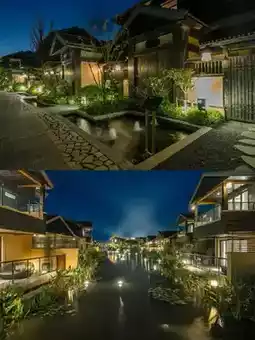 It's more like an ancient town than a hotel. The designer drew inspiration from Eastern culture and arranged the buildings in a scattered manner on the site. There is a lake, a pavilion, two islands, two springs and four bridges. Every corner can be used as a shooting location. When night falls, the lights on the lake are dotted, and the entire hotel is surrounded by a charming and dreamy atmosphere, making people feel like they have traveled to another time and space.