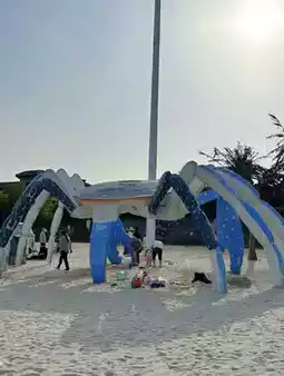 1⃣️Bihai Yinsha is an artificial beach🏖, still worth visiting. While the water isn't as blue as Sanya's, it's still clean and blue🐶. The sand seems to be transported from Hainan too (other beaches in Qidong have yellowish seawater🌊)
