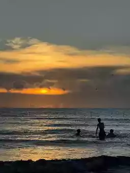 Arrived at 4:45 am to enjoy the sunrise, beach, waves, sea breeze, and the first glow of dawn. Watched young people rush into the sea facing the sunrise, felt the waves washing over their feet, and the sand gradually being swept away underfoot… it was truly beautiful.