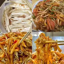 π Specialty: Local signature dish featuring chewy pancake strips stir-fried with vegetables, bursting with rich flavors.