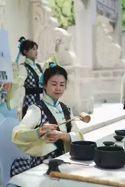 The creative market is bustling, the melody of folk songs drifts with the wind, the figure of gorgeous Hanfu shuttles, the Laoshan tea ceremony spreads the fragrance of tea, and experiences of national trend, intangible cultural heritage handcrafts such as making incense, rubbing, etc., immerse people in the rich cultural heritage.