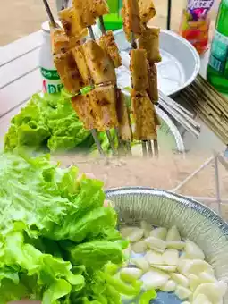 Skewers, fruits, drinks... The barbecue stall downstairs, reservation on the go! 🍖 Don't buy too much for photos, you can't finish it all in reality!