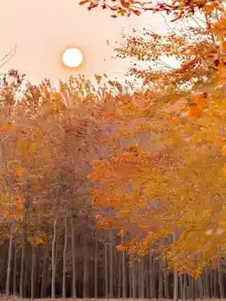 -- In the evening, as the sun sets, the afterglow dyes the Metasequoia forest golden, creating a full atmosphere.