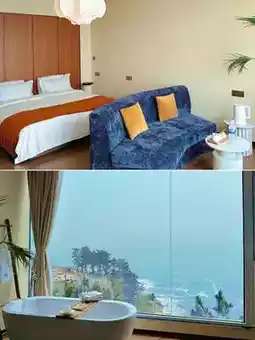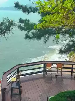 We stayed at Mohaimei Villa, which is located in front of Fanling. It is a quiet and elegant resort. There is a cliff cafe similar to the one in Bali, which makes people feel like they are in a foreign country. Against the backdrop of the clear blue sea and the majestic Laoshan Mountain, one can't help but feel the beauty of life.