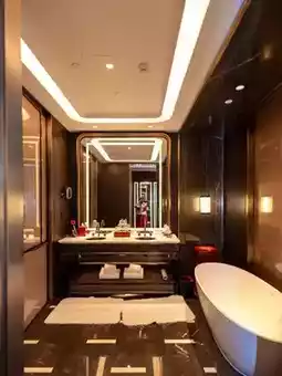 The festive atmosphere of Qingdao MGM Diaoyutai Hotel really captivated me! Go to Qingdao Diaoyutai Hotel for afternoon tea, take the red car elevator, and arrive at the lobby on the 51st floor. The magnificent Chinese garden design extends your line of sight outwards, and you can have a panoramic view of the sea and sky outside the window.