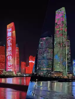 The building lasers reflected on the beach were really cool. I highly recommend it! โค๏ธ