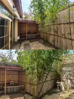 The courtyard also has a private hot spring pool. In the evening, surrounded by bamboo, I slipped into the warm water. At that moment, I enjoyed not just the hot spring but also the delightful harmony with nature.