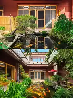 In the courtyard, a cat lazily basks in the sunshine while giant koi fish swim freely in the pond. Occasional breezes rustle the bamboo leaves, accompanied by birdsong. In this atmosphere, my tense spirit completely relaxed.
