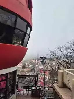 When I reached the top, the fog cleared slightly in the wind, and the scenery beyond began to be revealed little by little. The moment when the sea, the city, and the scaffolding appeared vaguely with the fog, it was so enchanting that I felt like I was in a watercolor painting. Even the sound of people's voices became quiet, and the quiet atmosphere as if everyone was absorbed in the scene was impressive. 😃