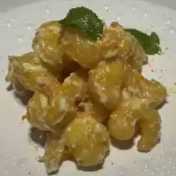 Signature menu items include the ‘Old Qingdao-style Fried Meat (老青岛炸肉)’ with crispy fried meat inside, the rich and savory ‘Haechang Fried Rice (海肠捞饭)’, ‘Stir-fried Shrimp and Cabbage’, ‘Steamed Yellow Corvina in a Clay Pot’, and ‘Soy Sauce Scallops’. The seafood handmade boiled dumplings and tofu soup are also popular.