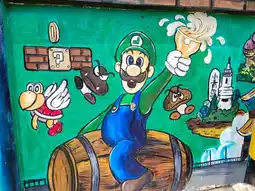 ภาพวาดบนกำแพงที่ได้รับแรงบันดาลใจจากผลงานของ Hayao Miyazaki และ Studio Ghibli มักพบเห็นได้ตามเมืองต่างๆ โดยเฉพาะในย่านที่อยู่อาศัยและย่านศิลปะ