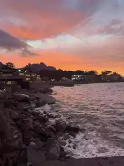 Sitting on the rocks, I watched the sun slowly sink into the sea, accompanied by the soothing white noise of waves crashing. Nearby, a few people were laughing and taking photos. In that moment, it felt like all my worries were swept away by the evening breeze. I recommend bringing a light jacket, as the evening sea breeze can be a bit chilly. You can also pack some snacks to enjoy while waiting for the sunset—instant happiness guaranteed!