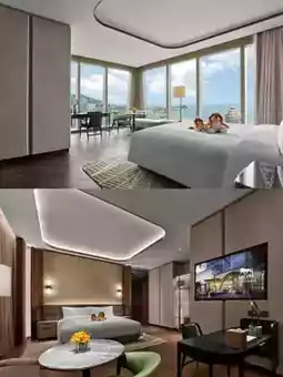 • The rooms have floor-to-ceiling windows. The deluxe sea view room I stayed in offers views of both the city skyline and Shilaoren coastline. Watching the pink dawn spread over the sea in the early morning is truly worth it